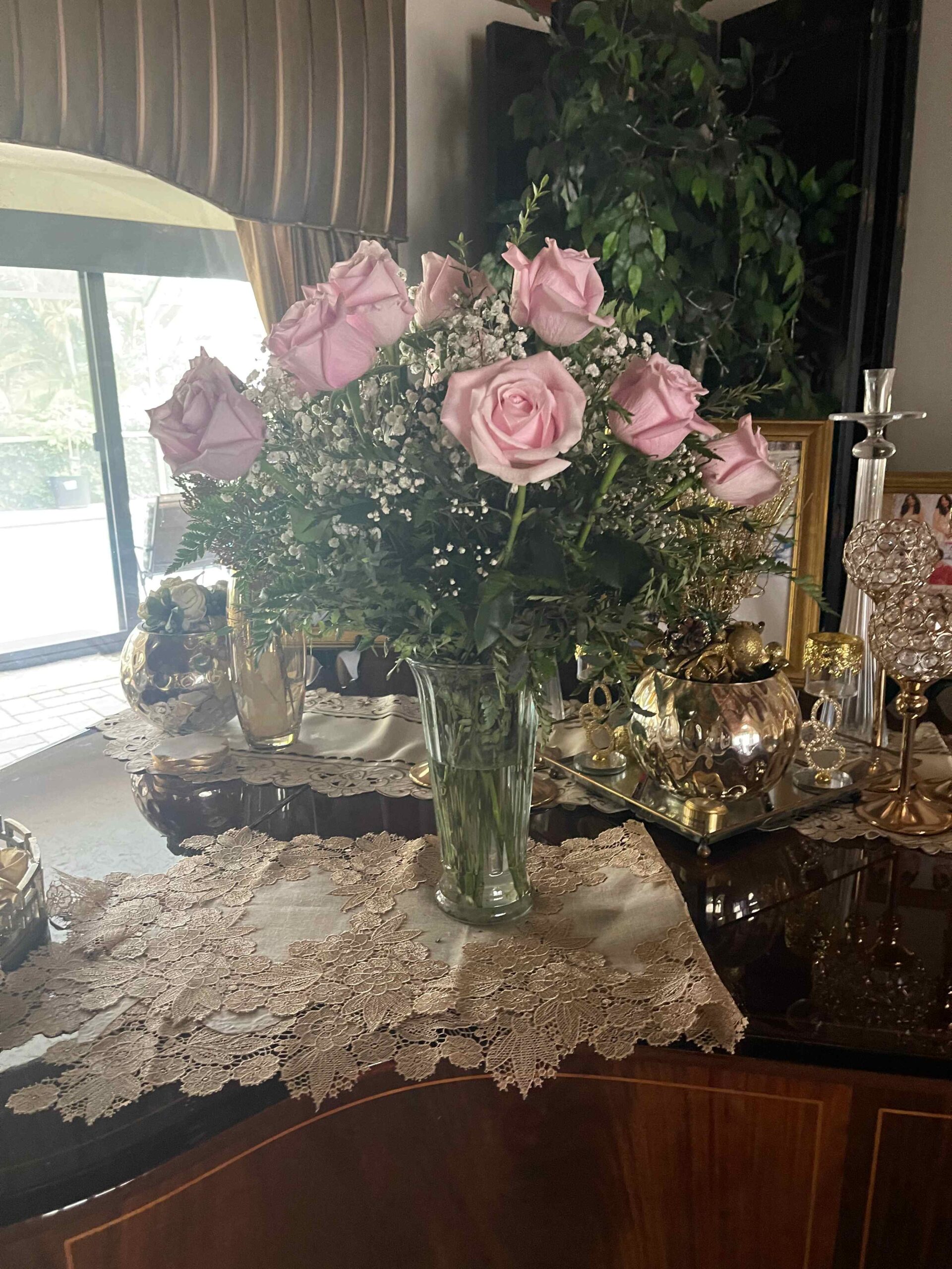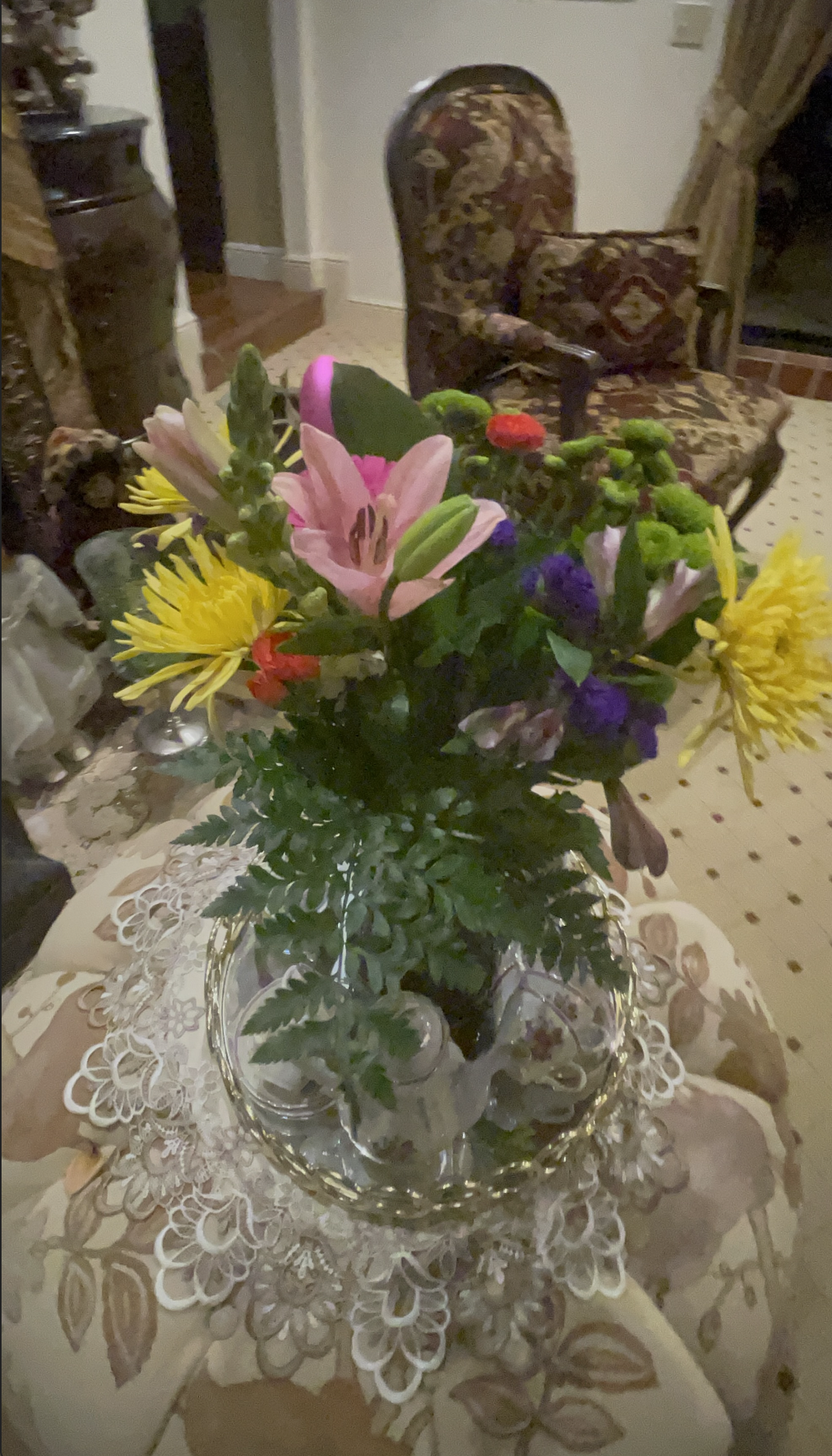 Flowers have always been one of the greatest joys of my life. Teddy would give me flowers every single week, and now my daughter continues that tradition. I receive a beautiful arrangement every month, and I believe that’s part of why I’m still here bto breathe them in, admire their beauty, and let them remind me of life’s blessings.